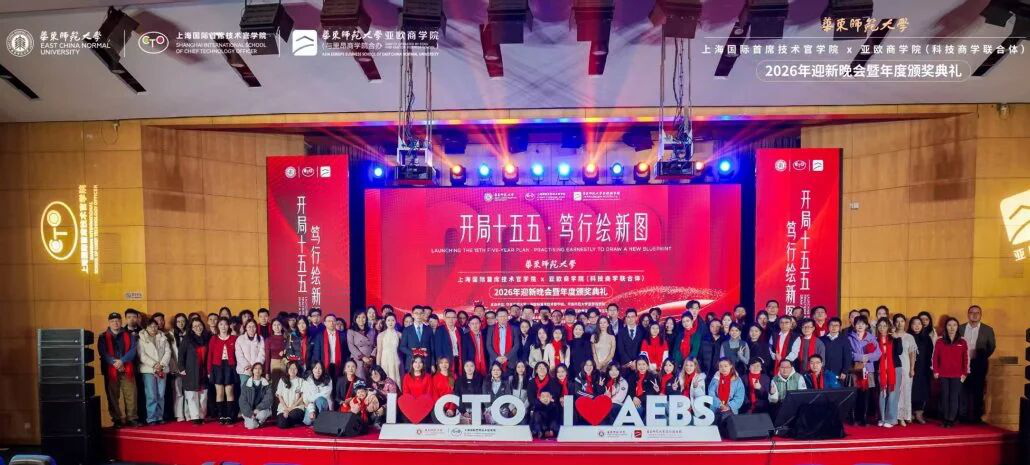 2025年12月27日,华东师范大学上海国际首席技术官学院(以下简称“CTO学院”)与华东师大亚欧商学院(科技商学联合体)2026年迎新晚会暨年度颁奖典礼在普陀校区科学会堂报告厅隆重举行。学院教师与来自全球各个国家和地区的学子齐聚一堂,多位领导和嘉宾莅临现场。