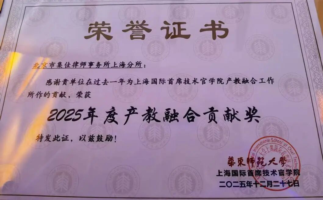 集佳律所上海分所获颁华东师大CTO学院“产教融合卓越贡献奖”