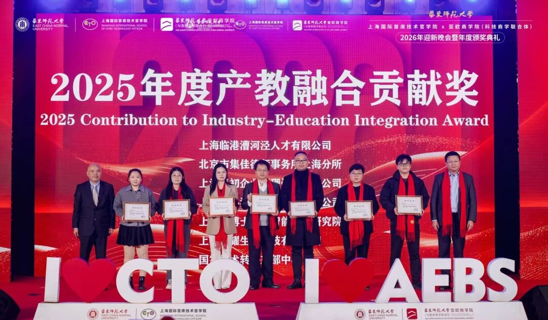 On December 27, 2025, the 2026 Welcome Party and Annual Award Ceremony co-hosted by the Shanghai International School of Chief Technology Officer (hereinafter referred to as "CTO School") of East China Normal University and the Asia Europe Business School (Joint Academic of Science and Business) of East China Normal University was grandly held at the Lecture Hall of the Science Auditorium of the Putuo Campus.
