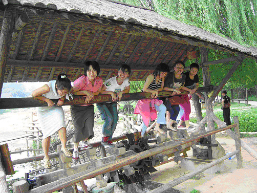农家乐,乐悠悠。采茶、踩水、卖菜,还不能忘记劳动后的舞蹈。 |
